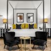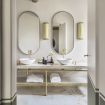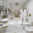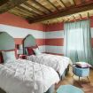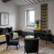 Going up the stairs, we find on the first floor a beautiful living room with fireplace, furnished with armchairs for relaxation area and on the right side, three double bedrooms all with en suite bathrooms and on the left side, other two bedrooms one of which can be with two separate beds.