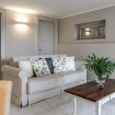 • *Living Area:* A cozy living room furnished with sofas, armchairs, and a television.